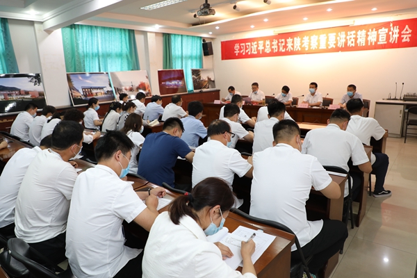 6月22日,王石凹旅游公司(礦)舉辦學習習近平總書記來陜考察重要講話精神宣講會,組織各黨支部書記、各單位負責人及機關全體人員集中學習總書記重要講話指示精神。