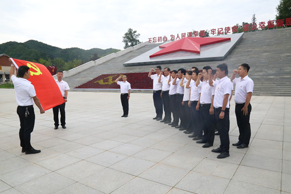 “我志愿加入中國(guó)共產(chǎn)黨,擁護(hù)黨的綱領(lǐng),遵守黨的章程,履行黨員義務(wù)……”。7月1日,陳家山煤礦黨委組織14名新老黨員到紅色教育實(shí)踐基地,踏尋紅色印跡,教育引導(dǎo)新老黨員不忘初心,奮力扛起新時(shí)代礦井安全發(fā)展的使命擔(dān)當(dāng)。