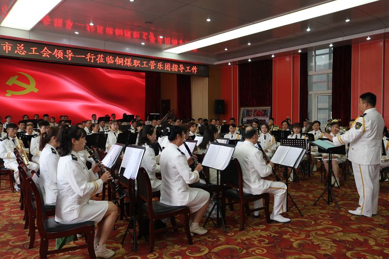 在銅煤職工管樂團(tuán)訓(xùn)練廳,一行人觀看了職工演奏的《唱支山歌給黨聽》《祖國(guó)不會(huì)忘記你》《桂河大橋進(jìn)行曲》等曲目。銅川市總工會(huì)技術(shù)指導(dǎo)王金生老師對(duì)銅煤職工管樂團(tuán)的精彩演出給予充分的好評(píng),并助力把銅煤職工團(tuán)樂團(tuán)推向更高的平臺(tái)。