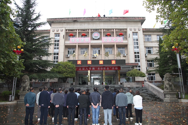 10月1日一大早,金華山礦領(lǐng)導(dǎo)和機(jī)關(guān)科室留守人員齊聚在該礦辦公大院內(nèi)舉行“慶國(guó)慶”升國(guó)旗儀式,共同慶祝中華人民共和國(guó)成立71周年。