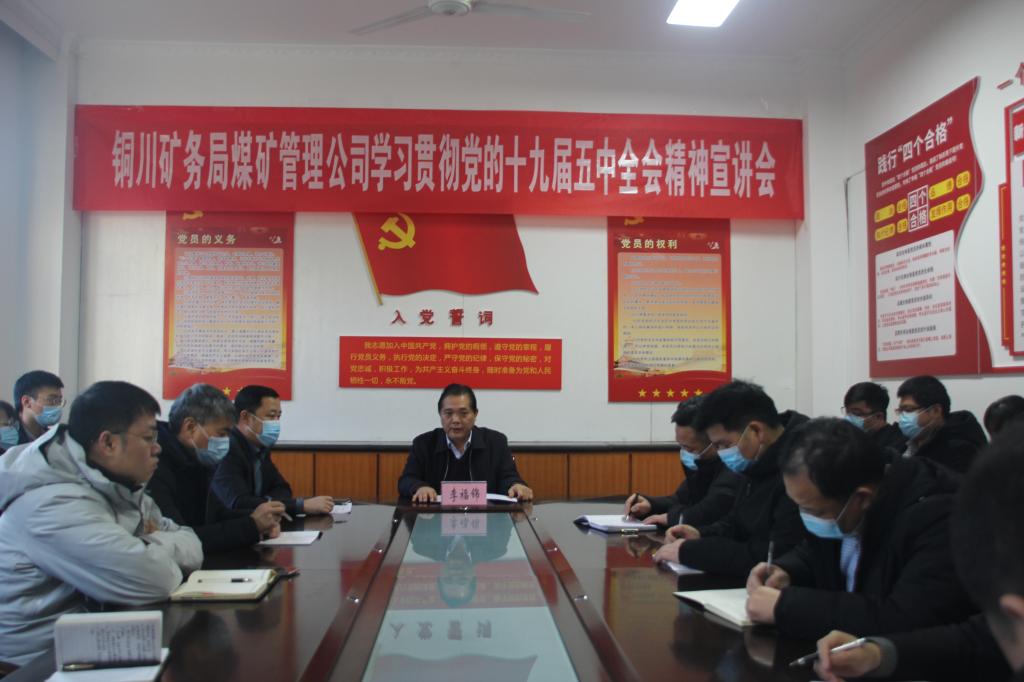 12月31日上午,煤礦管理公司組織召開學習貫徹十九屆五中全會精神宣講會,切實將全會精神的宣貫與年終歲首安全生產(chǎn)經(jīng)營等工作相結(jié)合,使全會精神入腦入心。