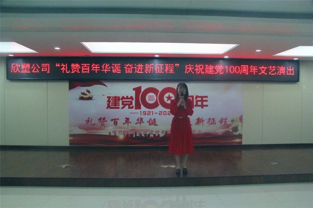 近日,欣塑公司舉辦“禮贊百年華誕 奮進新征程”慶祝建黨100周年文藝演出活動。熱烈慶祝中國共產(chǎn)黨成立100周年,回顧黨的百年光輝歷程,唱響新時代主旋律,展現(xiàn)廣大干部職工愛黨愛國情懷和團結拼搏、昂揚向上的精神風貌和愛黨愛國情懷。