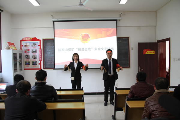 “掘進會戰(zhàn)強管理、科學(xué)測算縮時間。優(yōu)工藝、提速度,激勵政策來鼓舞……”。這是由青年志愿者們自編自導(dǎo)自演的快板《安全生產(chǎn)記心間》,讓礦工們把對幸福的礦山生活的喜悅之情轉(zhuǎn)到了另一個“頻道”。清脆的快板聲、歡快的吶喊聲、熱烈的鼓掌聲……回蕩在區(qū)隊學(xué)習(xí)室,仿佛一下子把鏡頭拉到了在家翹首期盼丈夫平安歸來的妻兒身邊,聲情并茂地演繹出親人對礦工兄弟們們深深地牽掛、思念、呼喚和對美好生活的寄托。