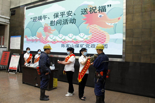端午節(jié)當日,陳家山煤礦在井口開展了以“迎端午 保平安 送祝?!睘橹黝}的端午節(jié)慰問活動,為職工送上了該礦黨政真切的關懷和深情的囑托,進一步推動了“安全生產(chǎn)月”活動的深入開展。
