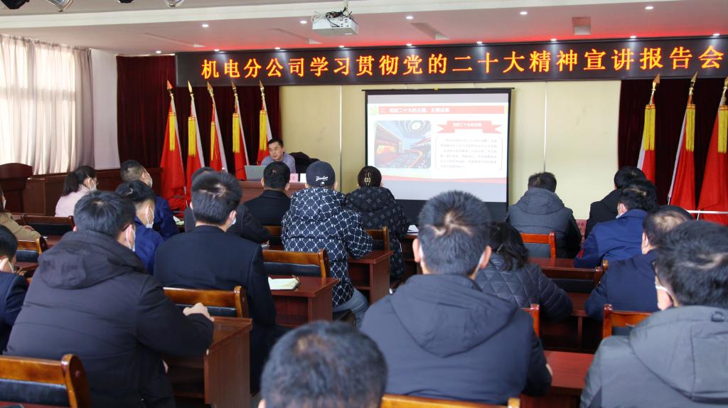 “黨的二十大報(bào)告與大家有什么密切聯(lián)系?作為黨員干部如何去貫徹落實(shí)......”下午3點(diǎn)的機(jī)電分公司會(huì)議室,黨的二十大精神宣講報(bào)告正在進(jìn)行中,該公司黨委書記接連拋出問(wèn)題,引得現(xiàn)場(chǎng)干部職工凝神傾聽(tīng)。