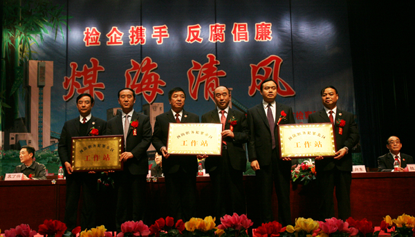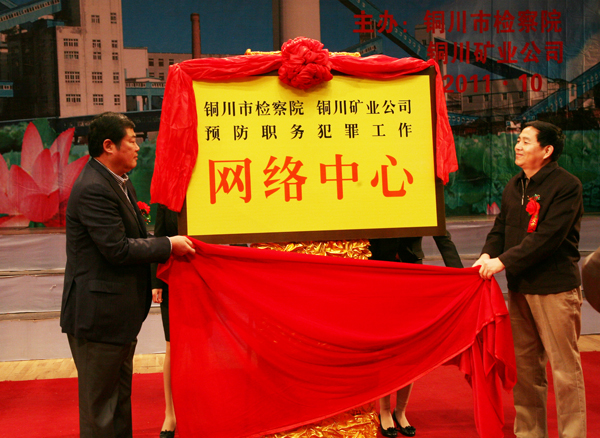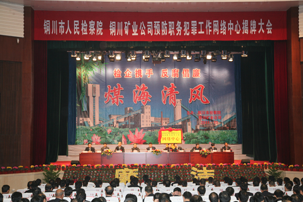 陜西省第二家、陜西煤化集團(tuán)和銅川市首家檢企預(yù)防職務(wù)犯罪工作網(wǎng)絡(luò)中心揭牌儀式,10月25日上午在銅川礦工俱樂(lè)部隆重舉行。隨著省高檢副檢察長(zhǎng)史建泉,陜西煤化集團(tuán)公司紀(jì)委書(shū)記吳衛(wèi)平,銅川市委常委、紀(jì)委書(shū)記趙曉明,銅川市委常委、政法委書(shū)記袁丁興,銅川市檢察院檢察長(zhǎng)王其敏,銅川礦業(yè)公司總經(jīng)理(局長(zhǎng))宋志剛,公司(局)黨委書(shū)記黃河等領(lǐng)導(dǎo)參加會(huì)議并為網(wǎng)絡(luò)中心揭牌,標(biāo)志著檢企聯(lián)手共同預(yù)防職務(wù)犯罪的一種新的工作形式在銅川礦業(yè)公司正式啟動(dòng)。
