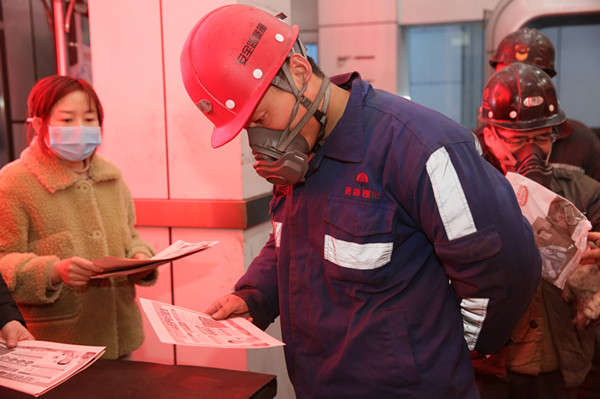 2月3日早上,在機電隊學習室,青年職工王瑤正在把印有疫情防控知識的宣傳單分發(fā)到職工手中,叮囑大家要佩戴口罩,勤洗手,不造謠,不傳謠,不信謠。