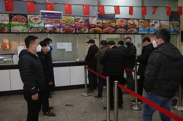 “年輕人嘛,吃飯時間比別人晚點,辛苦一些不重要,可以為疫情防控工作盡一點綿薄之力,確保咋們的職工安全,一切都值得!”職工餐廳排隊的人群里,李偉正在耐心勸導盡量將飯菜帶回宿舍吃,吃飯時大家盡量少交談,看著職工就餐快結(jié)束了,這才拿出自己的碗筷打飯。