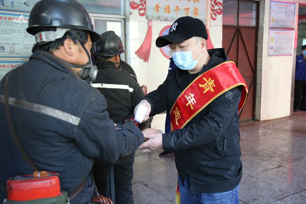 春節(jié)后復工復產(chǎn)后,該項目部青年志愿者們毅然挺身而出,積極投身新冠肺炎疫情防控“沒有硝煙的戰(zhàn)場”上,無論在職工單身樓、職工餐廳、辦公樓前、井口還是機修車間,都能看到青年志愿者服務的身影。他們無所畏懼,以實際行動展現(xiàn)時代精神,振奮戰(zhàn)疫一線。他們?yōu)槁毠y量體溫、發(fā)放疫情防控資料,普及疫情防控知識,提高員工對新冠肺炎的認知和預防能力,增強全體職工的疫情防控意識;及時了解掌握返礦員工身體狀況,正確地開展好防疫防控工作。疫情當前,“不忘初心、牢記使命”,3月5日,在礦部辦公樓前,書寫“眾志成城戰(zhàn)疫情、齊心協(xié)力保安全”的橫幅醒目刺眼,項目部青年志愿者身披綬帶,精神抖擻,為上下班的職工送上口罩,發(fā)放疫情防控宣傳單,開展疫情防控宣傳。
