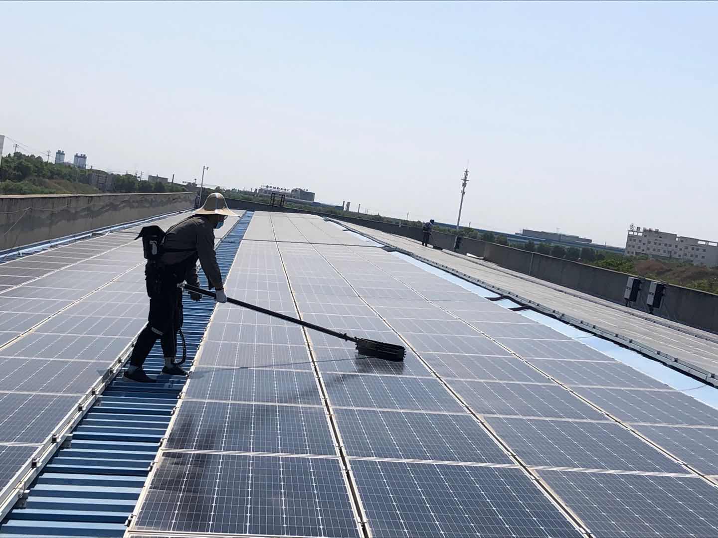 欣榮公司新區(qū)6MWp分布式光伏發(fā)電站,光伏板數(shù)量總計(jì)達(dá)20868塊,大都分布在屋頂。人工清掃難度大、工作量重。為安全、高效地完成光伏板清潔除塵任務(wù),公司根據(jù)現(xiàn)場實(shí)際情況,特制定清掃方案,并對團(tuán)員青年清掃隊(duì)伍進(jìn)行了風(fēng)險(xiǎn)預(yù)控和安全技術(shù)交底工作,保證團(tuán)員青年清掃隊(duì)伍的人身及設(shè)備安全。團(tuán)員青年克服困難,認(rèn)真仔細(xì)并耐心清掃,在一次次揮汗下,歷時兩天順利完成光伏清掃工作。