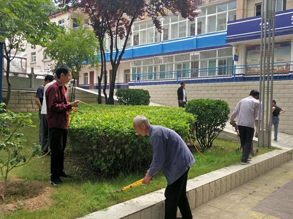 8日一大早,灑水車沿礦區(qū)公路進(jìn)行灑水降塵。黨委中心組學(xué)習(xí)結(jié)束后,全礦黨員自帶拖把、掃帚、抹布、水桶在辦公樓樓道、走廊打掃室內(nèi)外衛(wèi)生;有的自費(fèi)買來洗衣粉、洗潔凈擦玻璃;有的拿起掃帚打掃地面、有的拿著毛巾清理墻壁、擦拭宣傳櫥窗;有的拿起水桶,一桶一桶地來回打水;有的在花園里撿拾樹葉;有剪花修枝一技之長的黨員修剪花草樹木;有的推著草坪機(jī)割草;大家拉開距離,默默地干著各自的活,沒有語言、沒有吵鬧聲,大家忙碌的身影成為礦區(qū)一道亮麗的風(fēng)景線。