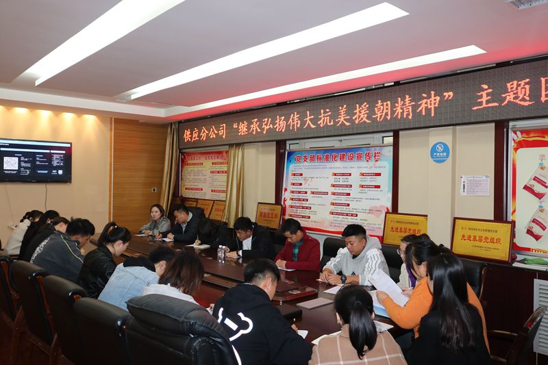 11月4日,供應(yīng)分公司團(tuán)委組織開展了“憶崢嶸歲月.抒家國(guó)情懷”紀(jì)念中國(guó)人民志愿軍抗美援朝出國(guó)作戰(zhàn)70周年主題活動(dòng),號(hào)召?gòu)V大青年員工不忘英雄歷史,傳承先烈精神,珍惜當(dāng)下的幸福生活,為企業(yè)發(fā)展貢獻(xiàn)智慧力量。