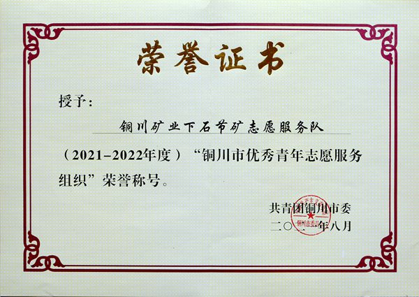 近日,從共青團(tuán)銅川市委傳來喜訊,下石節(jié)礦志愿服務(wù)隊(duì)以出色的工作業(yè)績榮膺“2021-2022年度銅川市優(yōu)秀青年志愿服務(wù)組織”稱號(hào),為該礦“小紅帽”青年志愿服務(wù)品牌再添一抹亮色。