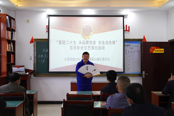 “喜迎二十大、奮戰(zhàn)四季度、全力保安全”百日安全生產(chǎn)行動(dòng)期間,陳家山煤礦團(tuán)委在礦黨政的大力支持和正確領(lǐng)導(dǎo)下,近日,精心組織青年志愿者深入基層區(qū)隊(duì)為礦工兄弟們送上了“私人訂制”的安全文藝節(jié)目,為礦井安全生產(chǎn)加油鼓勁。
