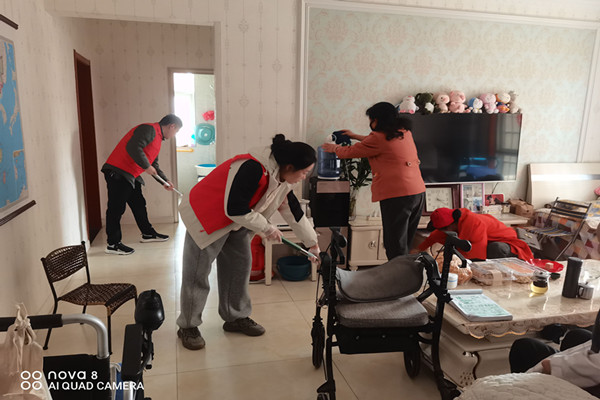 活動(dòng)當(dāng)日,管理中心青年志愿者們?cè)缭缂希瑤е鍧嵐ぞ咔巴先思抑?,大家分工明確,有條不紊地開始打掃。有的志愿者仔細(xì)擦拭家具、門窗,有的認(rèn)真清掃地面,還有的幫忙整理雜物。過程中,志愿者們還親切地與老人聊天,了解他們的生活狀況和需求,傾聽他們的故事,歡聲笑語(yǔ)回蕩在屋內(nèi),讓原本安靜的房間充滿溫馨。