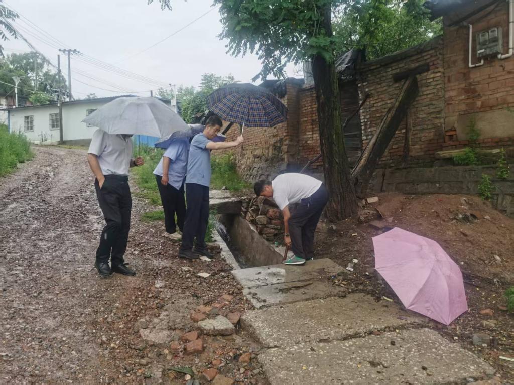在連綿不斷的大雨中,運(yùn)行部工作人員深入轄區(qū),對道路坑洼處進(jìn)行填補(bǔ),對排水渠開展清淤疏通作業(yè),盡管雨水打濕了衣裳,大家仍分工明確,有的手持鐵鍬平整路面,有的撐傘協(xié)助保障作業(yè)安全,還有的專注清理溝渠雜物,確保排水暢通,防止雨水囤積引發(fā)內(nèi)澇。工作人員對轄區(qū)內(nèi)老舊圍墻和大型樹木進(jìn)行了仔細(xì)的檢查,防止因大雨導(dǎo)致坍塌事故發(fā)生。