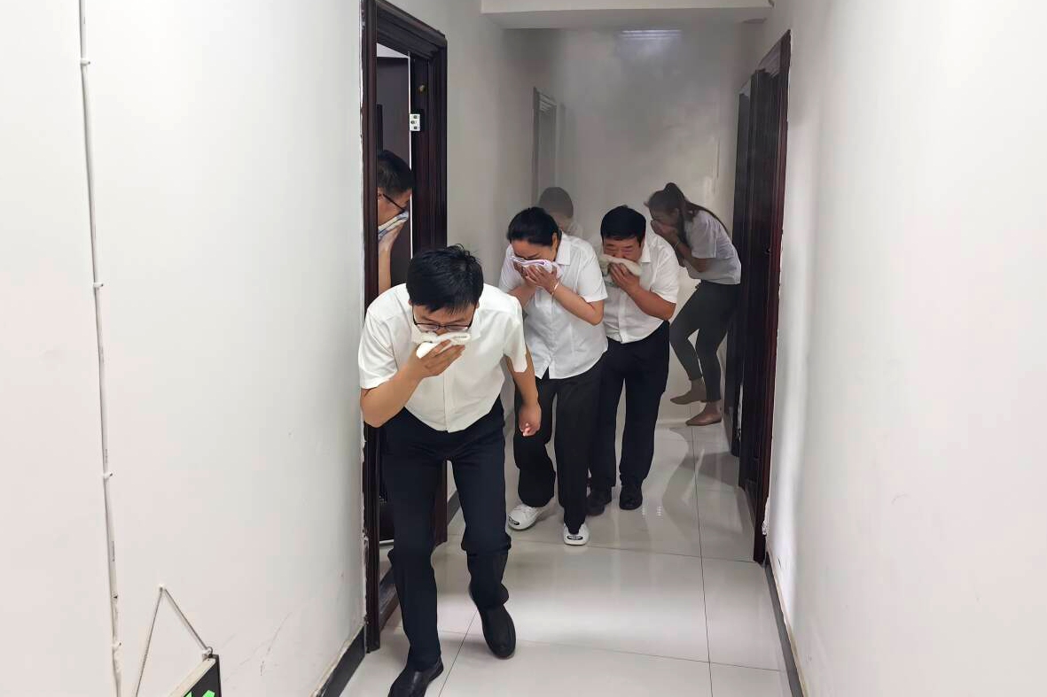 隨著刺耳的警報(bào)聲響起,演練正式拉開(kāi)帷幕。演練模擬辦公室樓道因電器故障突發(fā)火情,現(xiàn)場(chǎng)濃煙滾滾,值班員第一時(shí)間捕捉到報(bào)警信號(hào),立即啟動(dòng)火災(zāi)警報(bào)系統(tǒng),并同步上報(bào)火情,迅速啟動(dòng)應(yīng)急預(yù)案,滅火行動(dòng)組、疏散引導(dǎo)組、后勤保障組等多支應(yīng)急力量即刻響應(yīng),奔赴現(xiàn)場(chǎng)開(kāi)展救援行動(dòng)。