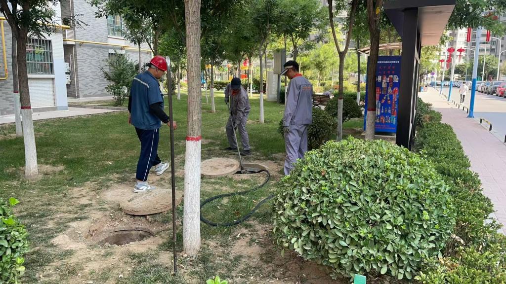 無畏熱,雙重“烤”驗。用汗水打通小區(qū)清污吸污主動脈,頂著高溫腐臭“雙重考驗”,工程部成立攻堅小組,班組長各負其責,明確時間節(jié)點和狠抓工程質(zhì)量,確保進度標準。人機配合作業(yè),在高溫的炙烤下,一線職工身著工作服,戴著橡膠手套,與渾濁的污水為伴,清掏著化糞池里的堵塞物。梧桐林、雪松林、柏樹林,一個個點位的化糞池被疏通,檢查井被清理,悶熱加上難聞的氣味,加上如蒸籠的高溫,惡臭撲面而來,但他們依然沒有停下手里的忙碌。