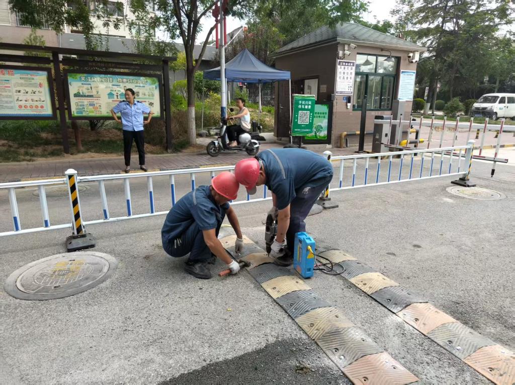 該中心在日常巡邏過程中發(fā)現(xiàn)小區(qū)交叉路口減速帶存在螺絲外露、松動以及破損有缺口的現(xiàn)象,工程維修部人員針對此類問題,對小區(qū)所有減速帶展開系統(tǒng)排查,按照配件類型、規(guī)格尺寸、損壞程度等標準實施精細分類管理。針對不同狀態(tài)的配件,采取差異化處理方案,對可修復配件實施專業(yè)化修復,對無法修復的零部件則進行標準化更換,減速帶的維修不僅消除了安全隱患,又深化全員成本管控思維,也為小區(qū)降本增效工作提供保障。