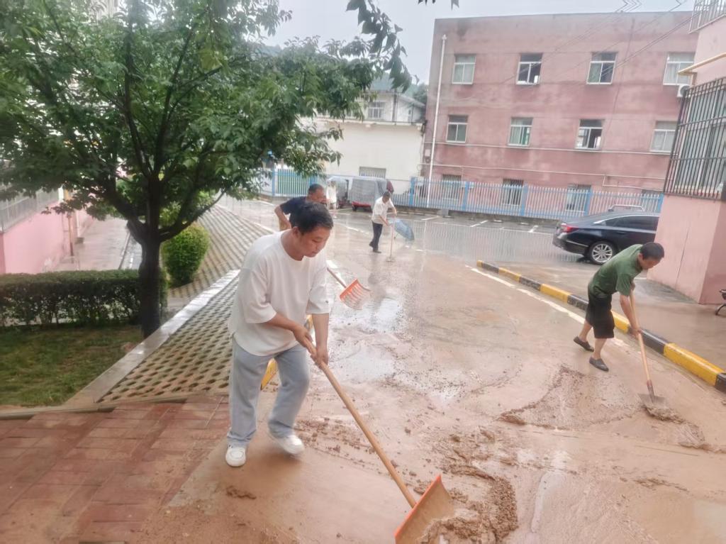 社區(qū)搶險隊員身著雨衣,手持鐵锨等工具化身“小區(qū)清道夫”逐一對受山洪沖刷影響的排水口、水井、樓前屋后排洪渠、低洼地帶進行“望聞問切”,用鐵鍬、鉤子等工具清掏淤積的落葉、淤泥,確保排水系統(tǒng)暢通無阻,在關(guān)鍵時刻彰顯了物業(yè)人“拉得出、頂?shù)蒙稀钡镁耧L(fēng)貌。