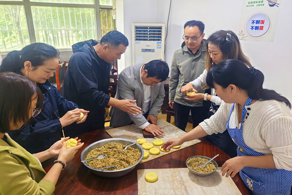 志愿者先向參與活動的職工家屬們講解了制作月餅的材料和步驟,通過和面、炒餡、包制到模具壓花,再到烘烤等一系列流程還原月餅的完整制作過程。并帶領(lǐng)大家動手制作,一場別具一格的包月餅大比拼就開始了。