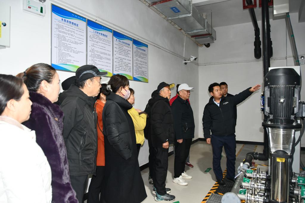 該中心工作人員帶領(lǐng)住戶代表前往地下室水泵房、熱力交換站等設(shè)備間,現(xiàn)場講解水泵的工作流程、日常巡檢要點和應(yīng)急處置流程,讓大家直觀了解園區(qū)供水系統(tǒng)的運行細節(jié),并圍繞供暖設(shè)備運行原理、供暖參數(shù)以及冬季供暖保障措施展開細致講解,針對住戶關(guān)心的供暖溫度、能耗等問題逐一回應(yīng)。