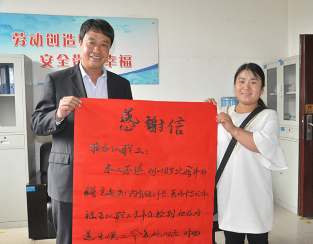 “真是沒有想到我丟的錢包還能失而復(fù)得,感謝你們培養(yǎng)的好職工,等他升井后請轉(zhuǎn)達(dá)我深深的敬意和感謝”,5月4日上午,從咸陽市趕來的張晶女士將感謝信送至玉華礦掘進(jìn)五隊,并與區(qū)隊值班干部一道將感謝信張貼在區(qū)隊樓門口。