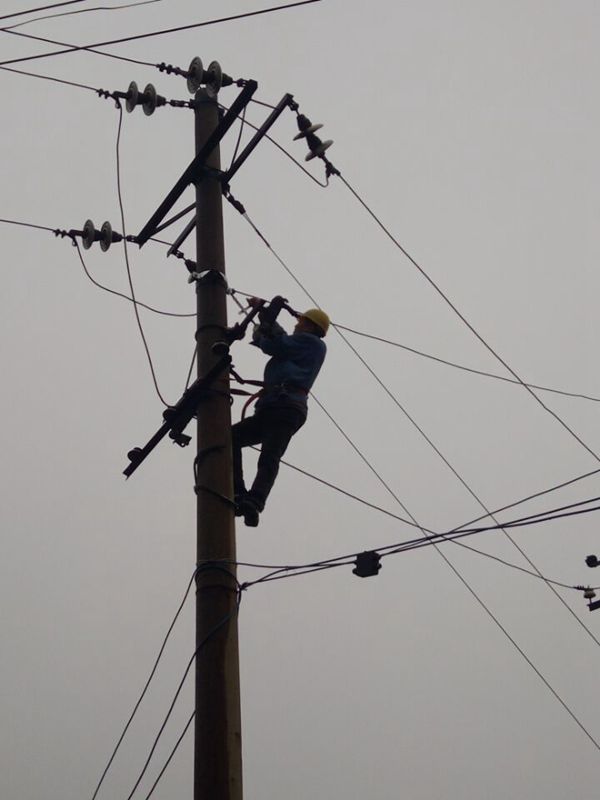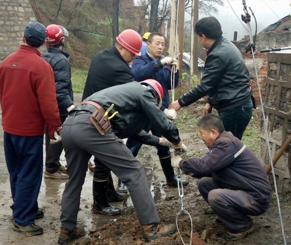 當天下午14時,所有搶修隊員準時到達事發(fā)地點,開始詳細查找故障點,經(jīng)過排查,發(fā)現(xiàn)運輸區(qū)側面路邊有一個低壓電桿傾斜,隨時都有可能倒地,造成事故發(fā)生。南春生立即下達命令,通知房產(chǎn)停電,進行搶修。此時,淅淅瀝瀝的小雨下個不停,寒風習習,但搶修人員臨危不亂,在做好一切安全措施后,他們便行動起來,風雨中大家有的拉繩、有的放線、有的安裝互感器、有的挖坑、有的固定電線桿……所有工作全面展開。經(jīng)過兩個小時,徹底消除了安全隱患,并恢復了正常供電。