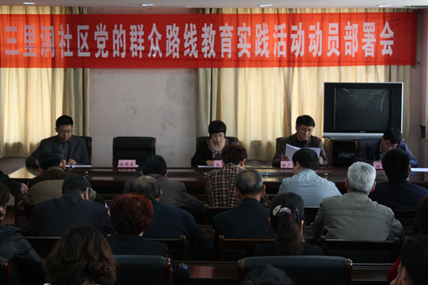 三里洞社區(qū)總支書記徐廣陽(yáng)根據(jù)社區(qū)實(shí)際情況作了動(dòng)員講話。他強(qiáng)調(diào)了開(kāi)展黨的群眾路線教育實(shí)踐活動(dòng)的必要性和重要性,以及活動(dòng)的主要內(nèi)容和任務(wù)。他要求,社區(qū)黨員干部應(yīng)迅速統(tǒng)一思想,以黨的十八大和十八屆三中全會(huì)精神為指導(dǎo),牢牢把握“照鏡子、正衣冠、洗洗澡、治治病”的總要求,按照實(shí)業(yè)公司要求,規(guī)定動(dòng)作不折不扣,切實(shí)查找好社區(qū)黨員干部中存在的“四風(fēng)”問(wèn)題,為解決實(shí)際問(wèn)題打好基礎(chǔ)。同時(shí),充分結(jié)合社區(qū)實(shí)際,緊緊圍繞存在的突出問(wèn)題,將自選動(dòng)作做精彩,扎扎實(shí)實(shí)完成教育實(shí)踐活動(dòng)各項(xiàng)任務(wù)。