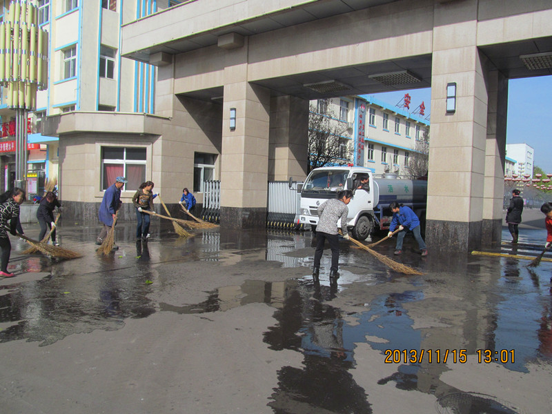 按照事先的部署和分工,職工們拿著掃帚、簸箕、鐵鍬、垃圾桶等工具迅速趕到指定的清理區(qū)域開展勞動,有的撿拾紙屑煙頭、有的拔雜草、有的揀石頭和樹枝、有的給街邊的樹木刷白、有的清掃落葉和垃圾、有的清洗廣場和街道。經過兩個多小時的奮戰(zhàn),在大家的齊心努力之下,整個街道煥然一新。