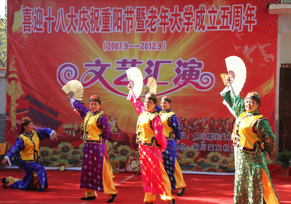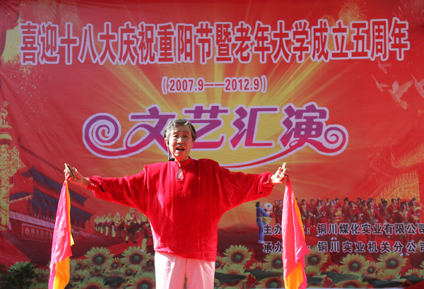 上午10時(shí)許,由銅川煤化實(shí)業(yè)公司主辦、銅川實(shí)業(yè)機(jī)關(guān)分公司承辦的銅川礦務(wù)局“喜迎十八大慶祝重陽節(jié)暨老年大學(xué)成立五周年文藝匯演”在歡快的樂曲聲中開始。銅川礦業(yè)公司、銅川煤化實(shí)業(yè)公司黨委書記黃河、銅川礦業(yè)公司原黨委副書記張志文,銅川實(shí)業(yè)公司黨委副書記、總經(jīng)理李先鋒,原銅川礦務(wù)局退休的局級老領(lǐng)導(dǎo)和銅川礦業(yè)公司、銅川實(shí)業(yè)公司有關(guān)部門的負(fù)責(zé)同志與離退休老同志一起觀看了文藝匯演和老年大學(xué)學(xué)員書法、繪畫、攝影展。