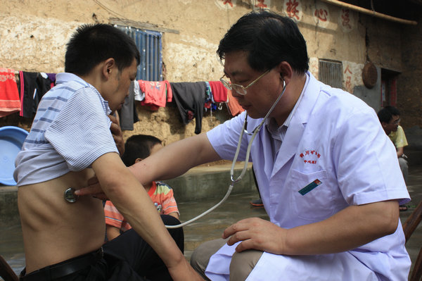 從前幾天開始,鎮(zhèn)上就有群眾奔走相告:“衛(wèi)生院要來大醫(yī)院的專家,要給咱看肺上的病?!痹S多人或是從外鄉(xiāng)趕來,或是把自己一家老少都帶到了衛(wèi)生院。義診第一天,直到晚上7點(diǎn)多,衛(wèi)生院里的人還是有增無減,大家都說要讓大醫(yī)院來的大夫好好給自己瞧瞧。