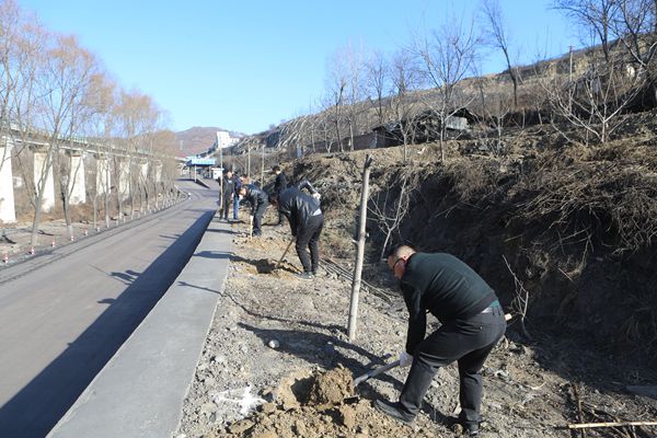 為進一步提升職工植樹造林、保護環(huán)境的主動意識。3月12日早上,該礦機關(guān)黨員干部積極參與到義務(wù)植樹美化亮化礦區(qū)環(huán)境的活動當中。大家?guī)е箧€、鐵鍬、水桶、臉盆等工具整裝待發(fā),分發(fā)樹苗,各自分工,延礦區(qū)主干道兩側(cè)一直延伸到礦外河道位置,每名黨員干部按照植樹位置,你挖坑,我扶樹,他培土,大家相互協(xié)作,甩開膀子大干,用洋鎬、鐵鍬挖好一個個整齊的樹坑,依次將樹苗輕輕放入、擺正、填土、踏實,然后又拿著水桶、水盆、水壺滿載著清水一趟趟接力往返在剛栽種的樹苗間,讓每一棵樹苗喝足定根水,保證樹苗的成活率。三月的礦山還彌漫著絲絲寒意,植樹隊伍里的黨員干部不顧滿頭大汗,即便累的汗流浹背、氣喘吁吁,也沒有一個人叫苦叫累,大家都全身心的投入到火熱的植樹造林活動當中。通過黨員干部近三個多小時的共同努力,160棵柳樹苗全部栽種到位。放眼望去,一排排栽種整齊的柳樹在暖暖春風中格外挺拔,像一個個英姿颯爽的戰(zhàn)士守衛(wèi)著礦山熱土,在這里扎根生長,為綠色礦山增添了一抹別致的風景。