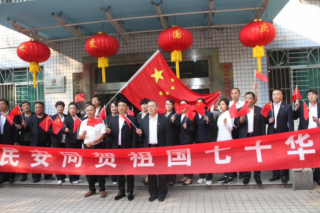 隨后,在分部所屬五站四小區(qū)內(nèi),所有工作人員統(tǒng)一服裝,手拿國(guó)旗,儀態(tài)端莊,面向五星紅旗,精神抖擻,神采激昂地歌唱祖國(guó),當(dāng)天,川口分部離退休人員秧歌鑼鼓隊(duì),自發(fā)組織文藝活動(dòng)慶祝國(guó)慶的到來(lái),小區(qū)內(nèi)鑼鼓喧天、歡聲笑語(yǔ)不斷,共同慶祝建國(guó)七十華誕。