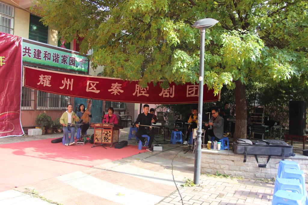 演出吸引了小區(qū)居民,大家在表演開始前,就已在臺下坐好,準備觀看。在熱鬧的開場舞中拉開了序幕,快板、相聲、小品、秦腔一個個節(jié)目將演出推向了高潮,現(xiàn)場觀眾笑聲不斷,滿堂喝彩,呈現(xiàn)出一派其樂融融的熱鬧場面。