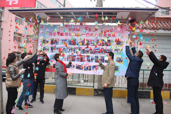 2月24日,近千只紙鶴活靈活現(xiàn)的掛在史家河管理中心河濱路小區(qū)大門口,這是該小區(qū)住戶向日夜奮戰(zhàn)在疫情一線,守護(hù)職工群眾生命安全的工作人員,以這種特有的方式表達(dá)內(nèi)心最誠(chéng)摯的敬意。