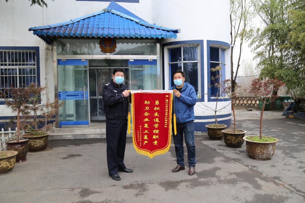 3月27日,陳家山煤礦將印有“勇?lián)煌ü芸芈氊?zé),助力企業(yè)復(fù)工復(fù)產(chǎn)”的錦旗送到銅川市耀州區(qū)公安分局柳林中隊(duì)工作人員手中,感謝他們?yōu)槠髽I(yè)復(fù)工復(fù)產(chǎn)期間提供的幫助。