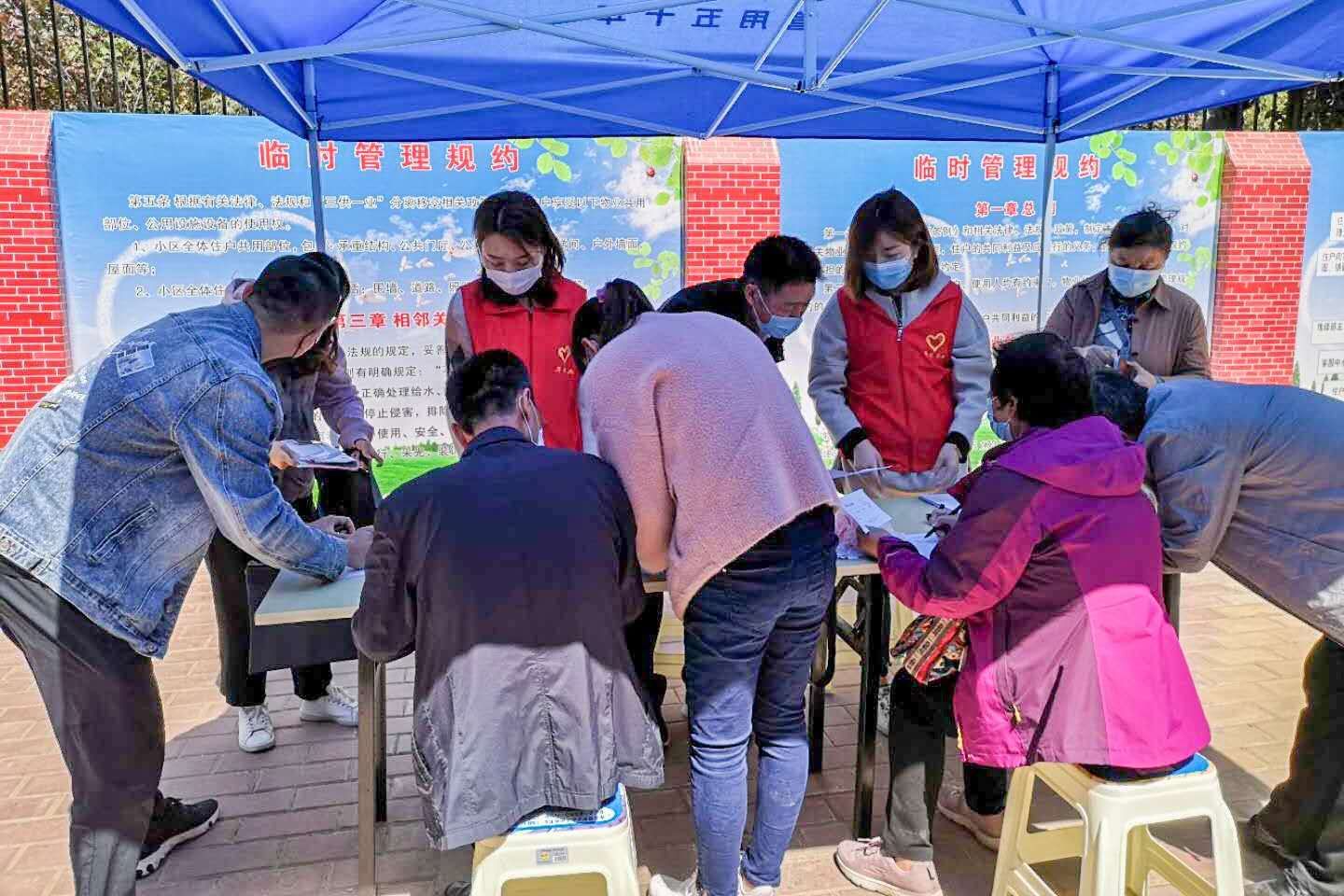 崗前培訓,熟悉流程。4月14日,志愿者們統(tǒng)一著裝,身穿紅馬甲、頭戴小紅帽來到繡園小區(qū)。大家在上崗前統(tǒng)一進行崗前培訓,在對交房流程、具體事項和分工要求了解熟悉后正式進入各自崗位,進行接待引導、測溫掃碼、填表簽約、驗房、裝修巡查等工作。