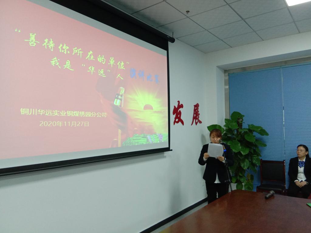 為提升職工思想意識(shí),強(qiáng)化職工愛(ài)崗敬業(yè)精神,11月27日下午,銅煤繡園小區(qū)舉辦“《善待你所在的單位》我是‘華遠(yuǎn)’人”演講比賽,激發(fā)全體干部職工愛(ài)崗敬業(yè)、履職盡責(zé)的責(zé)任意識(shí)。