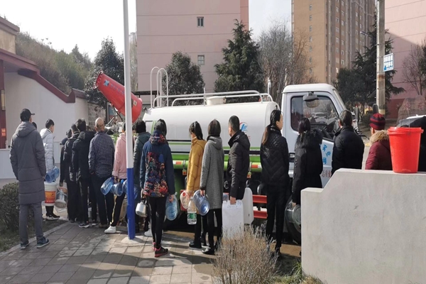 12月11日晚上9點(diǎn)左右,銅川市王益區(qū)川口區(qū)域突然斷水,直至12月12日早上仍然沒有來水,停水造成諸多不便,成為社區(qū)急需解決問題。為解決住戶的燃眉之急,梅苑管理中心積極響應(yīng),迅速協(xié)調(diào)水罐車,中午11點(diǎn)左右就為小區(qū)住戶送來了生活用水。