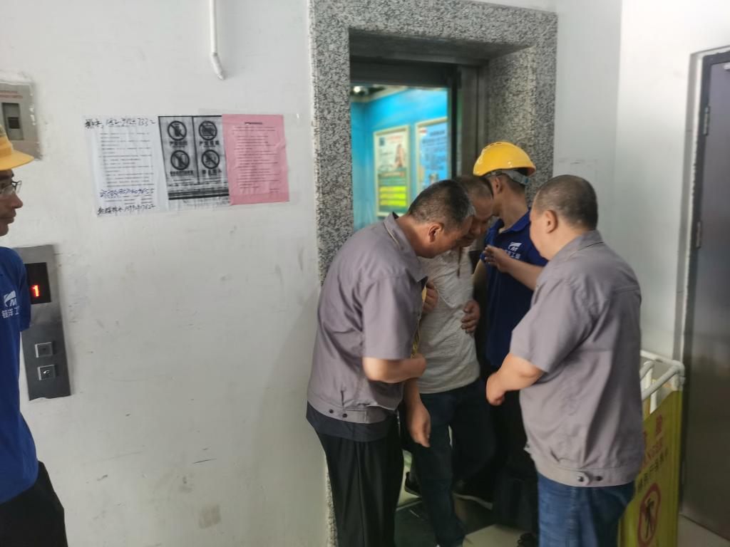9時(shí)10分監(jiān)控室接到被困乘客五方報(bào)警后,及時(shí)向當(dāng)班領(lǐng)導(dǎo)匯報(bào),并迅速聯(lián)系維保公司救援,并詳細(xì)告知被困人員乘坐電梯的組團(tuán)名稱、樓號(hào)、單元號(hào)、梯號(hào)及被困位置(樓層),同時(shí)打開困人電梯視頻監(jiān)控,對(duì)轎箱內(nèi)情況進(jìn)行觀察,并對(duì)被困乘客進(jìn)行安撫,確保被困人員無過激或失控行為,靜待救援,如發(fā)現(xiàn)情況失控要及時(shí)報(bào)告值班領(lǐng)導(dǎo),并做好記錄。 在演習(xí)過程中,兩支搶險(xiǎn)小分隊(duì)行動(dòng)迅速,反應(yīng)敏捷,聽從指揮,分工細(xì)致到位,在緊張有序的氛圍中,圓滿地完成了搶險(xiǎn)救援小組指定的工作任務(wù)。