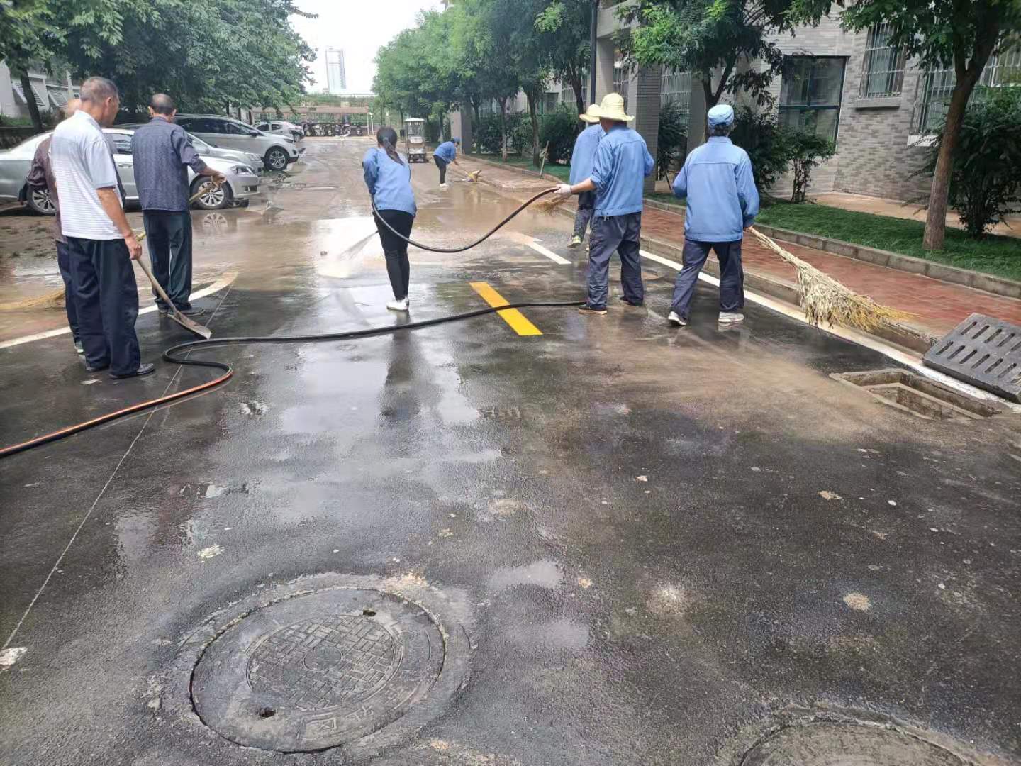 大雨過后,管理中心組織人員對雨后雨水井里面的雜物進(jìn)行了清理,以保證雨排順暢,用清水將路面上的泥沙沖洗干凈,確保住戶出行安全,有力保障了小區(qū)環(huán)境的干凈整潔。他們的行動贏得了住戶紛紛贊揚(yáng),他們用雙手守護(hù)著小區(qū)的安全,用勤勞守護(hù)著美好家園。