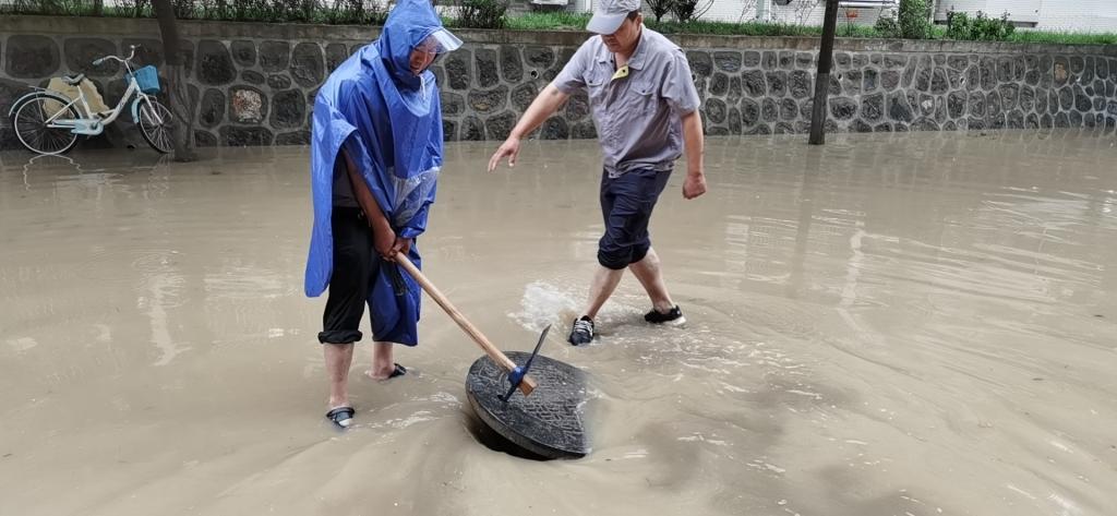 7月18日早晨,又迎來了一輪強(qiáng)降雨,銅煤一號芳草地因地勢較低,降雨來得急、雨量大,致使雨水、泥沙及雜物將雨水篦子堵塞,造成排水不暢,導(dǎo)致芳草地5號樓道路、門廳、車棚積水嚴(yán)重。巡查人員將情況及時向分管領(lǐng)導(dǎo)做了匯報,分管領(lǐng)導(dǎo)第一時間通知工程部,值班領(lǐng)導(dǎo)立即組織三防隊(duì)員冒著大雨趕赴現(xiàn)場,他們不顧肆虐的暴雨彎下身子用手清掏雨水篦子雜物,把井蓋打開進(jìn)行排水,直到管道疏通并將門廳、路面及車棚里的水清理干凈。在搶險過程中,為了確保安全,物業(yè)領(lǐng)導(dǎo)撐著雨傘站在雨中提醒過往車輛,路面有被沖開的井蓋,請大家暫時不要通過注意安全。雨水沒過了他們的腳裸,隊(duì)員們的衣服都被雨水浸透,但是他們毫無怨言,在雨中清理著雨水井,道路、門廳和車棚下面的積水后。