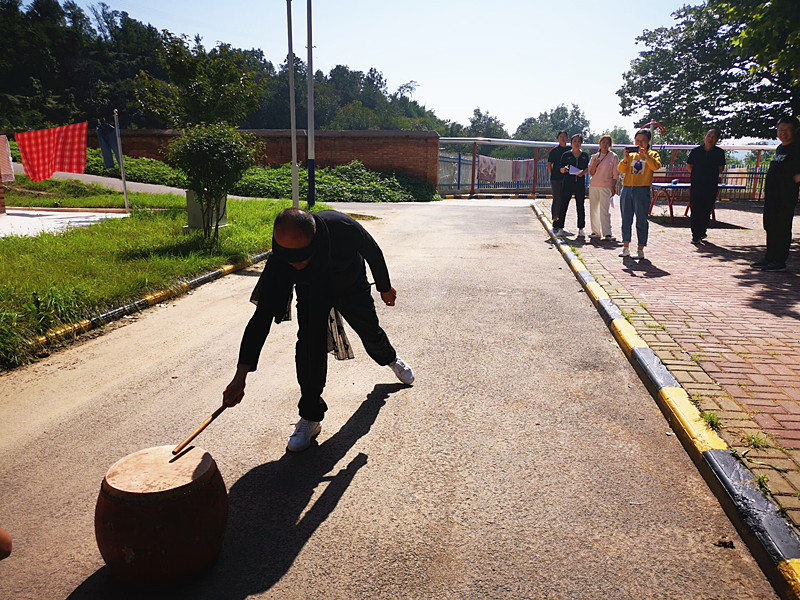 活動(dòng)中分別設(shè)置了“夾彈球、瞎子擊鼓、滾鐵環(huán)”等趣味項(xiàng)目。在瞎子擊鼓比賽中,選手蒙眼原地轉(zhuǎn)三圈后手持鼓錘前進(jìn)敲擊遠(yuǎn)處的大鼓,用時(shí)最短者勝出。途中因?yàn)檗D(zhuǎn)圈后許多選手無法正確判斷大鼓所在的方向,遲遲無法敲響大鼓,引得場(chǎng)外觀眾七嘴八舌的指揮,笑的前仰后合。滾鐵環(huán)比賽中,使不少人感受到了童年的快樂,加油、吶喊聲此起彼伏,各項(xiàng)比賽扣人心弦,趣味盎然。直到所有項(xiàng)目全部結(jié)束,參賽者和觀眾們?nèi)匀慌d致勃勃、意猶未盡。