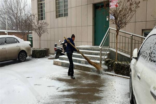 為方便業(yè)主出行,消除安全隱患,陜焦管理中心本著“即下既清、雪停路凈”的原則,第一時間開展義務掃雪活動。 還未到上班時間,全體黨員干部職工早早來到單位。有人用鐵鍬敲碎堅冰,有人用掃把清掃余雪。