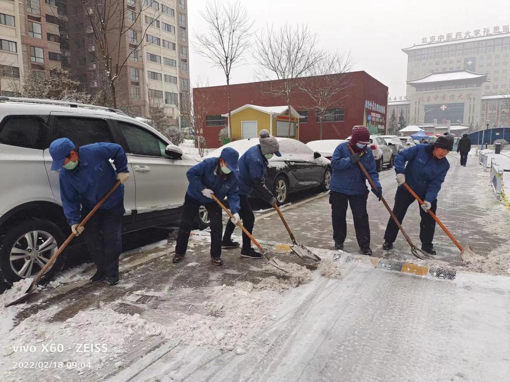 雪情就是命令,為了確保園區(qū)住戶早間出行安全, 大家一早就開始行動(dòng)起來(lái),辦公室以及機(jī)關(guān)工作人員負(fù)責(zé)清除園區(qū)大門內(nèi)外主路面的積雪;園區(qū)各組團(tuán)負(fù)責(zé)清理自己轄區(qū)內(nèi)樓宇前廳、人行步道路面;秩序維護(hù)以及保潔人員則對(duì)園區(qū)各主干道路面拋撒融雪劑,清理融化雪水,以確保車輛安全出行。大家不畏嚴(yán)寒,手持清雪工具,鏟的鏟、掃的掃。由于小區(qū)老年人比較多,大家在清雪的同時(shí),也不忘提醒過(guò)路的行人要注意安全。