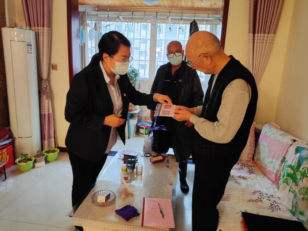 “太感謝咱們小區(qū)工作人員了,你們送來核酸二維碼卡片給我們,這下我們做核酸方便多啦!”家住銅煤繡園牡丹園80多歲的抗美援朝老兵劉爺爺激動地說。