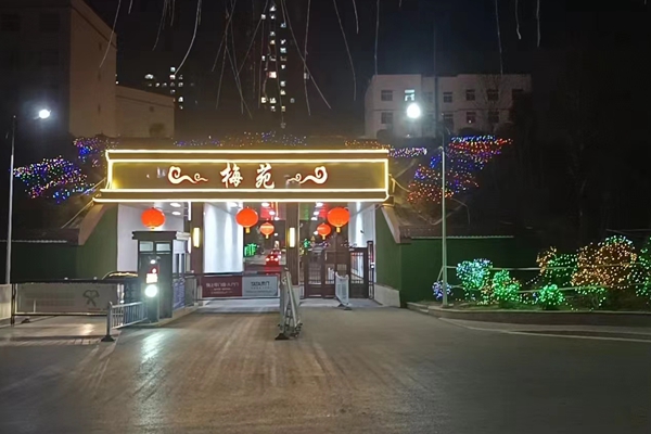 “玉兔將臨門,祝福處處存?!被鸺t的燈籠,閃爍的彩燈,喜慶的對(duì)聯(lián),隨處可見的中國紅攜著梅苑管理中心全體職工對(duì)小區(qū)住戶的新春祝福讓溫暖守護(hù)“不打烊”。