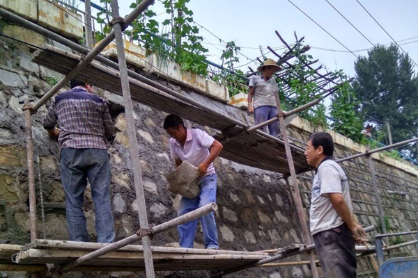 在搶修現(xiàn)場,有的搭架子,有的設(shè)警戒線、有的和水泥沙子,現(xiàn)場搶修隊員頭頂著雨水,身披濕透的衣服,毫無怨言的投入到搶修護坡工作中。經(jīng)過一天的奮力搶修,終于在天黑前順利完成了搶修任務(wù)。