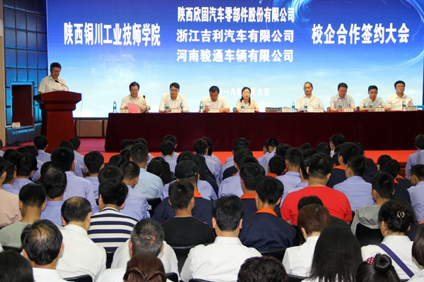 6月6日下午,陜西銅川工業(yè)技師學(xué)院與陜西欣固汽車零配件股份有限公司、吉利汽車集團(tuán)、河南駿通車輛有限公司三家企業(yè)舉行了校企合作簽約儀式,銅川市就業(yè)局、教育局各位領(lǐng)導(dǎo)參加了儀式。